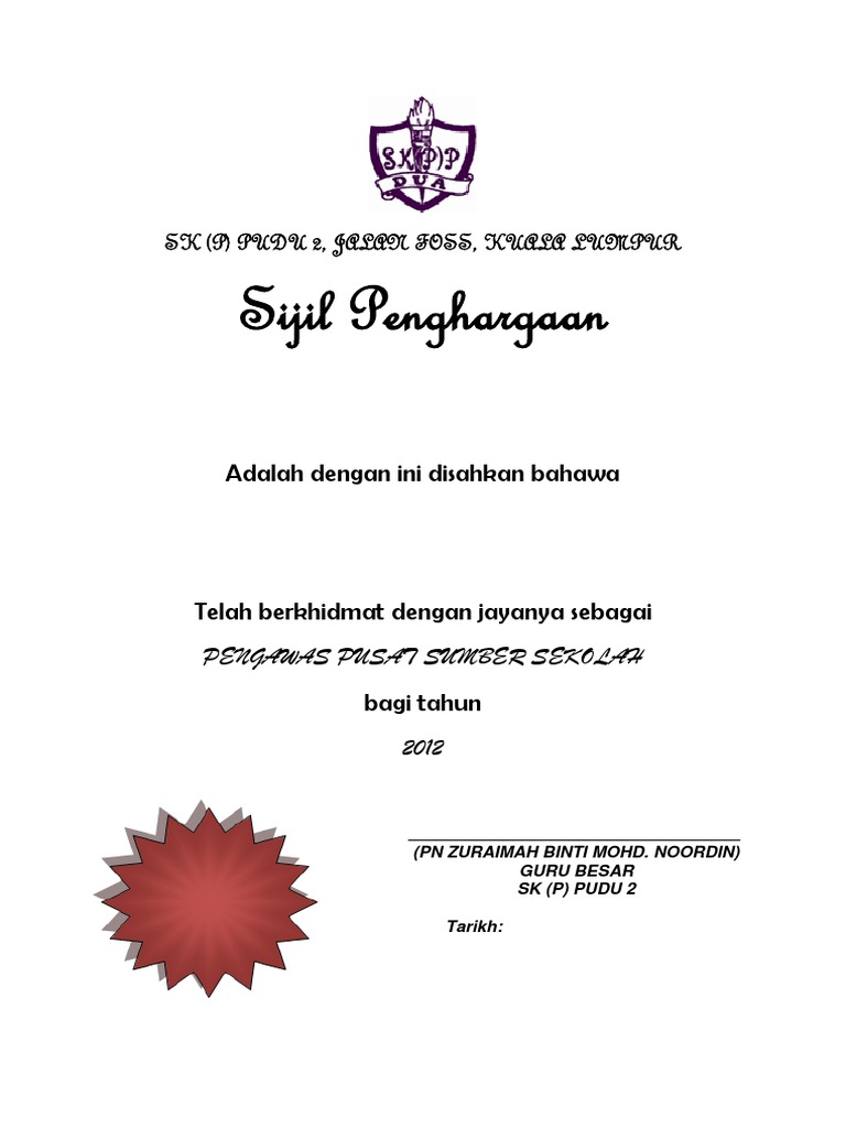 Contoh Sijil Pengawas Pusat Sumber Pdf